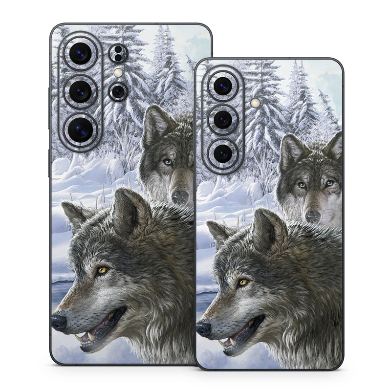 iStyles Samsung Galaxy S26 Series Skin design of Mammal, Vertebrate, Wolf, Canidae, canis lupus tundrarum, Canis, Wildlife, Carnivore, Wolfdog, Dog, with gray, black, blue, purple colors, and tagged with animals, nature.