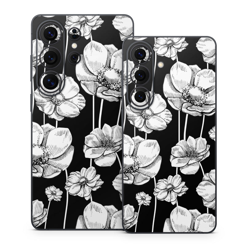 iStyles Samsung Galaxy S26 Series Skin design of Flower, Black-and-white, Plant, Botany, Petal, Design, Wildflower, Monochrome photography, Pattern, Monochrome, with black, gray, white colors, and tagged with patterns, flowers.
