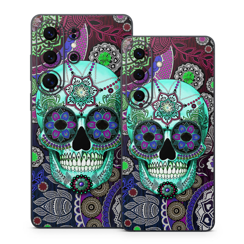 iStyles Samsung Galaxy S26 Series Skin design of Psychedelic art, Pattern, Skull, Purple, Bone, Violet, Design, Visual arts, Art, Magenta, with blue, green, purple, red, green, pink colors, and tagged with skulls, patterns, flowers.