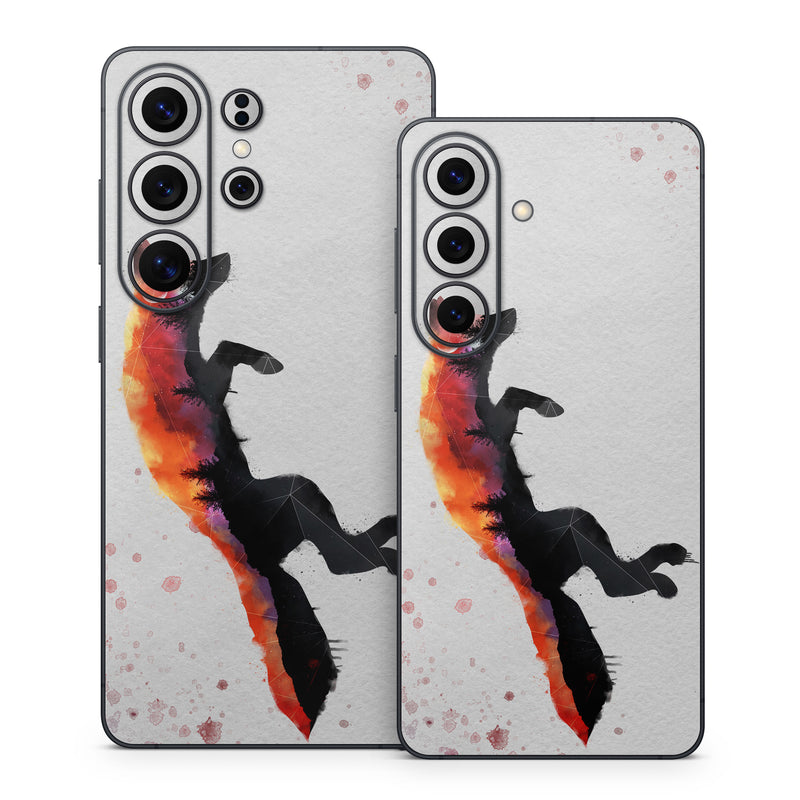 iStyles Samsung Galaxy S26 Series Skin design of Illustration, Watercolor paint, Art, Graphic design, Painting, Red fox, Visual arts, Paint, Drawing, Tail, with gray, black, red, yellow, orange, white colors, and tagged with animals, nature, space, animals, fox, moon, nature, night, stars, watercolor.