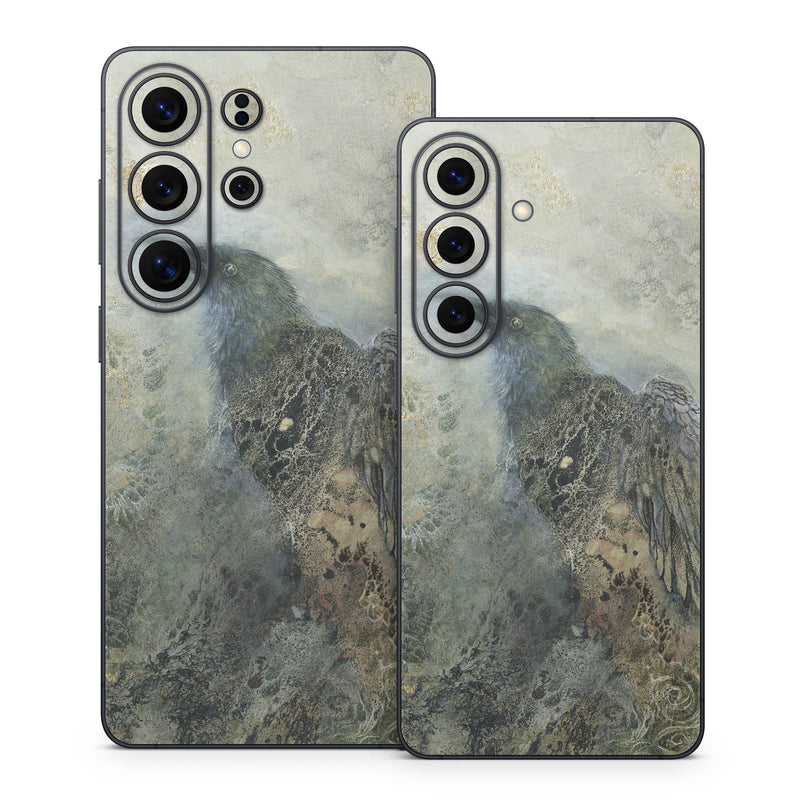 iStyles Samsung Galaxy S26 Series Skin design of Painting, Water, Geology, Art, Rock, Watercolor paint, Illustration, with black, gray, white, blue colors, and tagged with animals, abstract, bird, birds, raven.