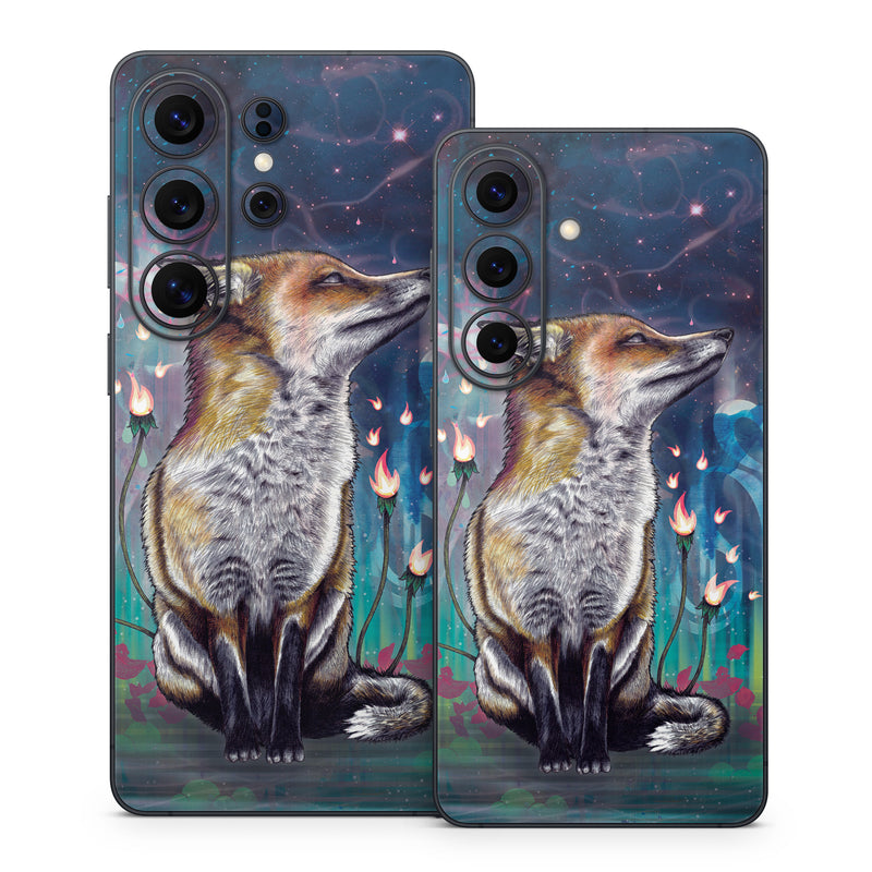 iStyles Samsung Galaxy S26 Series Skin design of Red fox, Art, Wildlife, Canidae, Illustration, Fox, Carnivore, Painting, Dhole, Red wolf, with black, gray, blue, red, green colors, and tagged with animals, patterns.