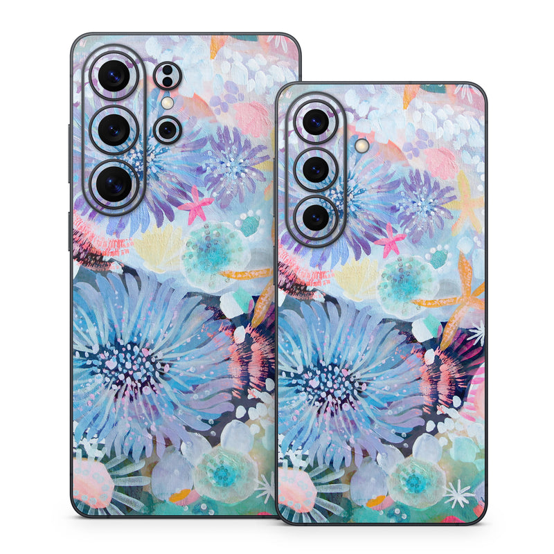 iStyles Samsung Galaxy S26 Series Skin design of Pattern, Aqua, Textile, Design, Watercolor paint, Visual arts, Flower, Art, Plant, Illustration, with blue, orange, pink, purple, green, white colors, and tagged with nature, flowers, animals, beach, bright, flowers, ocean, pastel, sea, sealife, starfish, water, watercolor.
