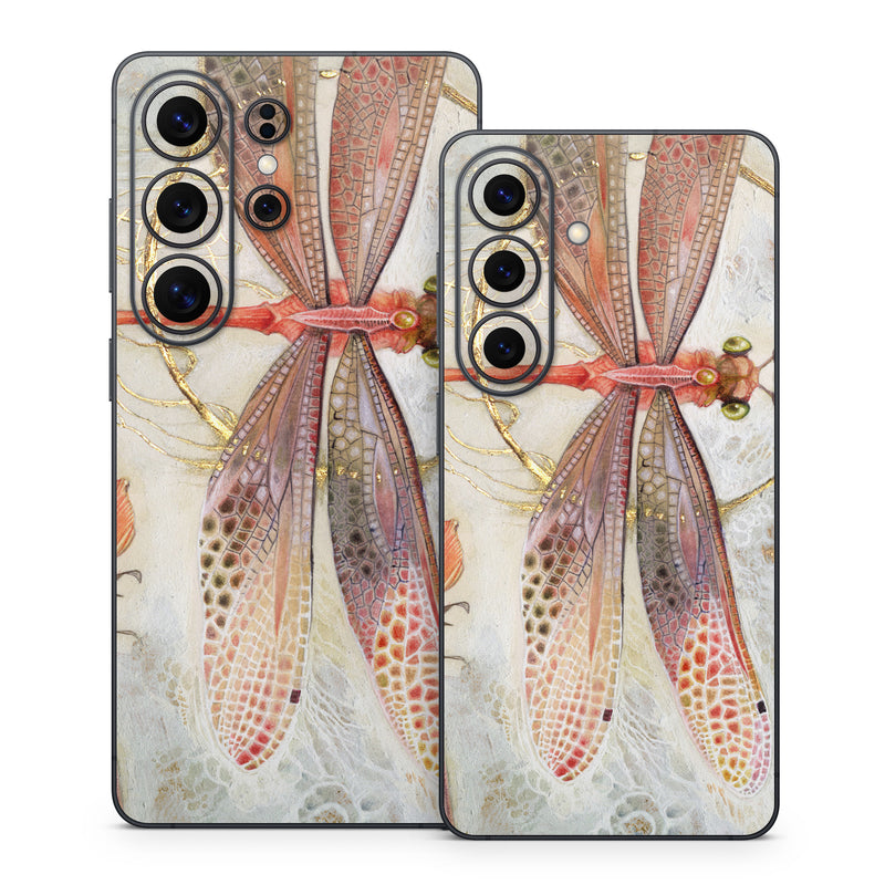 iStyles Samsung Galaxy S26 Series Skin design of Watercolor paint, Botany, Flower, Illustration, Floral design, Painting, Plant, Coquelicot, Art, Still life photography, with red, yellow, gray colors, and tagged with animals, flowers, bugs, dragonfly, flowers, insects.