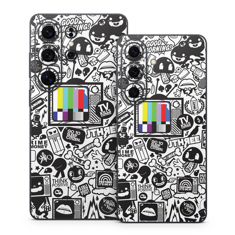 iStyles Samsung Galaxy S26 Series Skin design of Pattern, Drawing, Doodle, Design, Visual arts, Font, Black-and-white, Monochrome, Illustration, Art, with gray, black, white colors, and tagged with patterns, objects.