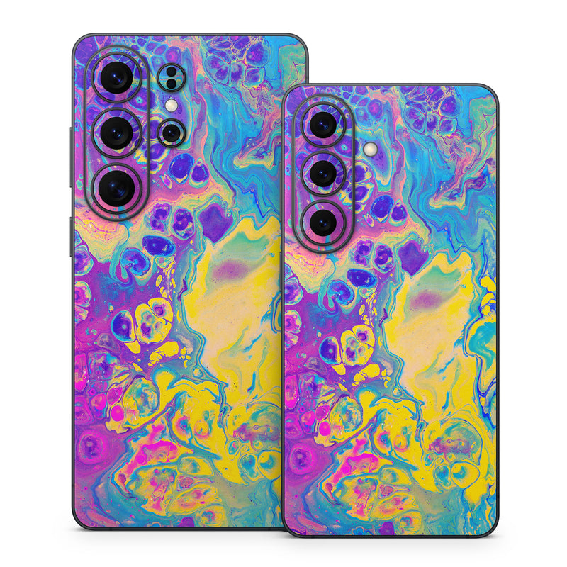 iStyles Samsung Galaxy S26 Series Skin design of Psychedelic art, Pattern, Purple, Visual arts, Design, Art, Fractal art, Electric blue, Graphic design, Graphics, with blue, yellow, purple, pink colors, and tagged with abstract, fantasy, marble, paint, painting, rainbow, soap, tiedye.