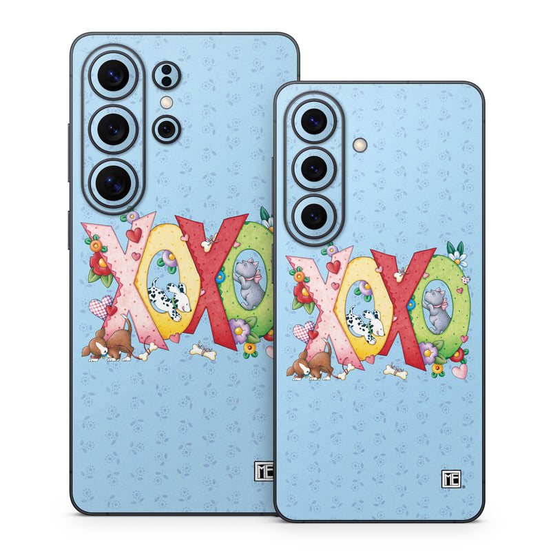 iStyles Samsung Galaxy S26 Series Skin design of Rectangle, Font, Creative arts, Art, Pattern, Happy, Illustration, Circle, Graphics, Visual arts, with blue, pink, yellow, red, green, orange, brown, white, black colors, and tagged with animals, signs, hearts, flowers, patterns, xoxo, love, valentine, puppies, dogs, dalmatians, hearts, flowers.