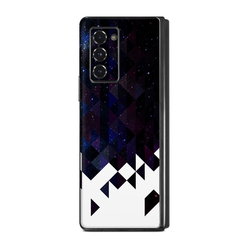 iStyles Samsung Galaxy Z Fold2 Skin design of Text, Pattern, Graphic design, Font, Purple, Design, Line, Triangle, Logo, Graphics, with black, blue, white colors, and tagged with patterns, space, geometry, space, stars, triangles.