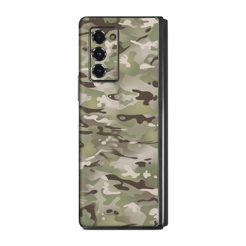 iStyles Samsung Galaxy Z Fold2 Skin design of Military camouflage, Camouflage, Pattern, Clothing, Uniform, Design, Military uniform, Bed sheet, with gray, green, black, red colors, and tagged with military, lookslike, patterns.