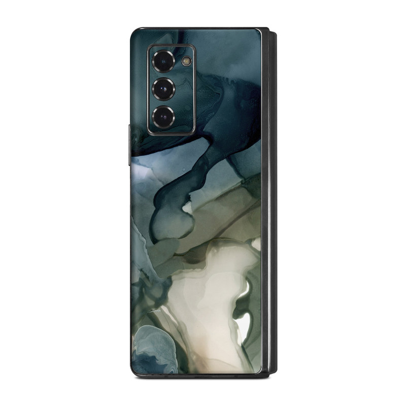 iStyles Samsung Galaxy Z Fold2 Skin design of Azure, Petal, Organism, Grey, Art, Pattern, Beauty, Painting, Close-up, Tree, with black, blue, green, white colors, and tagged with patterns, abstract, blue, blues, marble, paint, painting, water, watercolor.