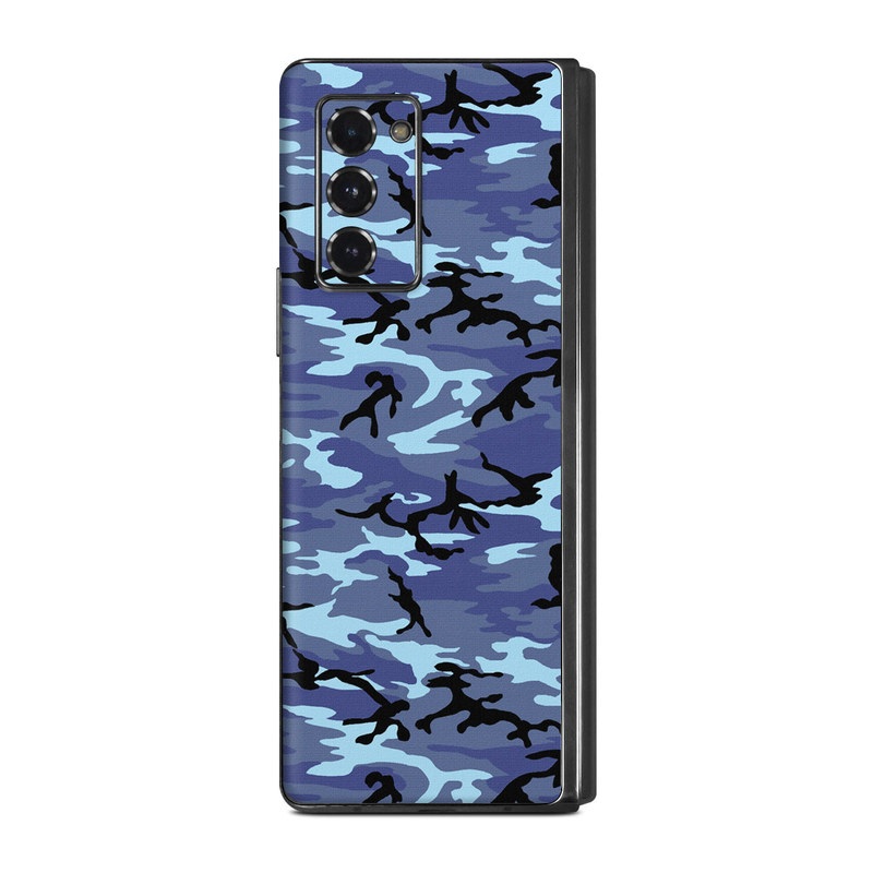 iStyles Samsung Galaxy Z Fold2 Skin design of Military camouflage, Pattern, Blue, Aqua, Teal, Design, Camouflage, Textile, Uniform, with blue, black, gray, purple colors, and tagged with military, patterns, lookslike.
