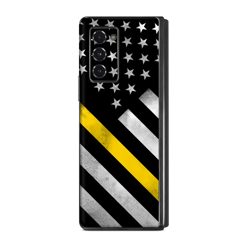 iStyles Samsung Galaxy Z Fold2 Skin design of Flag of the united states, Flag, Yellow, Line, Black-and-white, Pattern, Monochrome, Graphic design, Parallel, with black, white, gray, yellow colors, and tagged with flags, signs, ems, fire, firstresponder, flag, police, rescue, thinline.