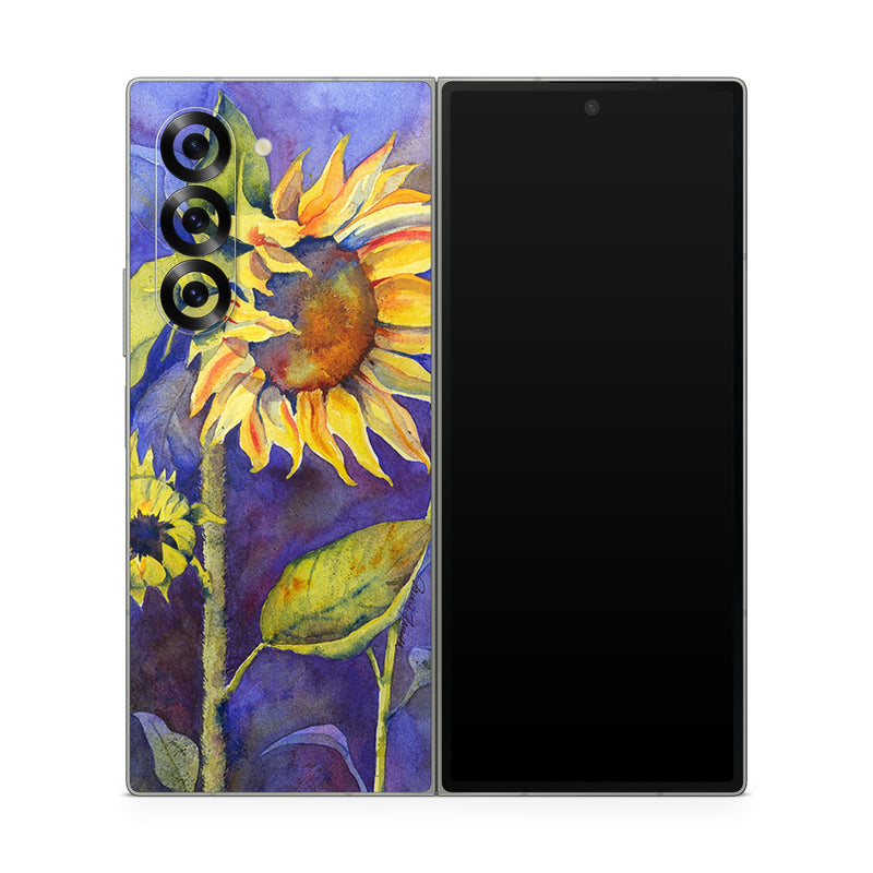 iStyles Samsung Galaxy Z Fold6 Skin design of Flower, Sunflower, Painting, sunflower, Watercolor paint, Plant, Flowering plant, Yellow, Acrylic paint, Still life, with green, black, blue, gray, red, orange colors, and tagged with flowers, fineart.