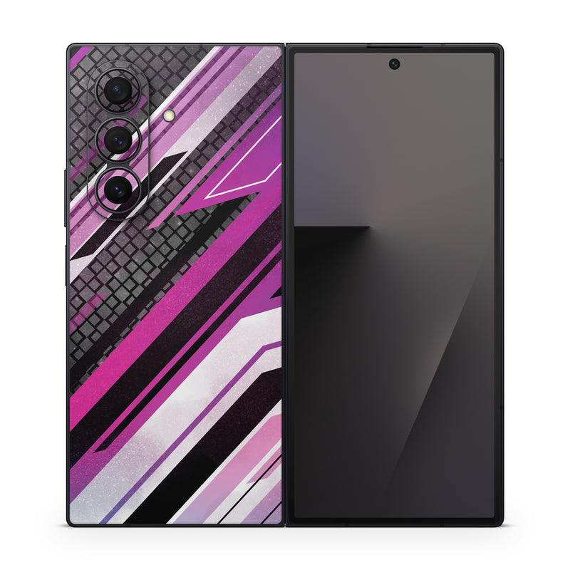 iStyles Samsung Galaxy Z Fold7 Skin design of Automotive lighting, Hood, Grille, Purple, Automotive design, Automotive exterior, Violet, Motor vehicle, Pink, Line, with black, purple, white, gray, pink colors, and tagged with patterns, patterns, lines, shapes.
