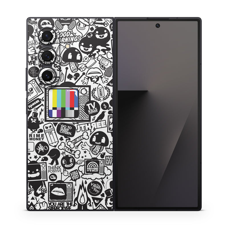 iStyles Samsung Galaxy Z Fold7 Skin design of Pattern, Drawing, Doodle, Design, Visual arts, Font, Black-and-white, Monochrome, Illustration, Art, with gray, black, white colors, and tagged with patterns, objects.