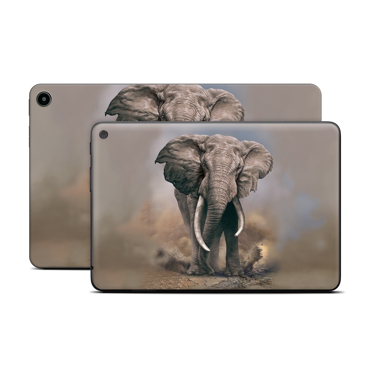 iStyles Amazon Fire Tablet Series Skin design of Elephants and Mammoths, Terrestrial animal, Indian elephant, African elephant, Wildlife, Tusk, Snout, Organism, Working animal, Illustration, with brown, gray, white colors, and tagged with animals, animals, elephant, nature.