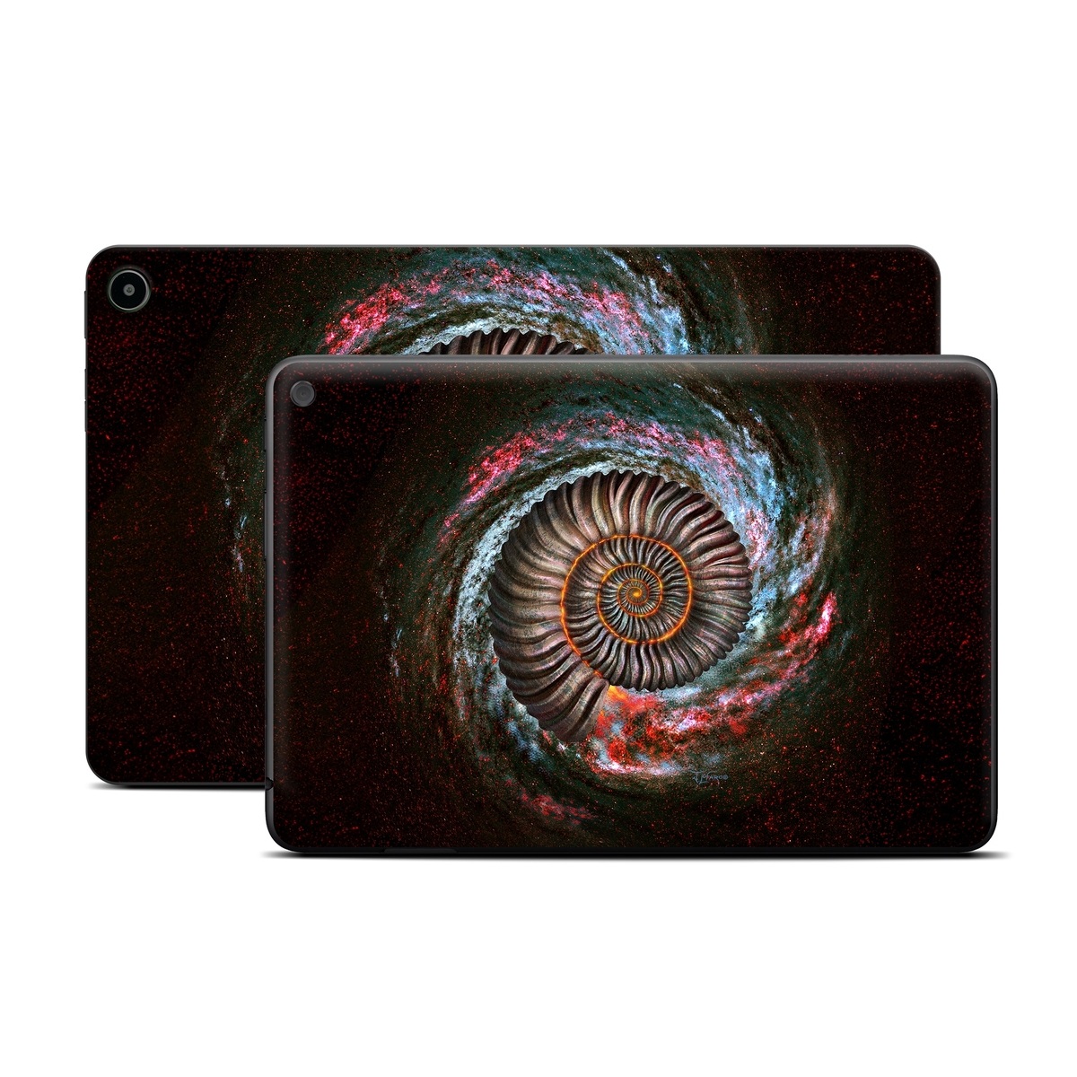 iStyles Amazon Fire Tablet Series Skin design of Spiral, Fractal art, Vortex, Circle, Art, Ammonoidea, with black, brown, red, white, blue, green colors, and tagged with animals, patterns, space, celestial, galactic, galaxy, outerspace, sci-fi.