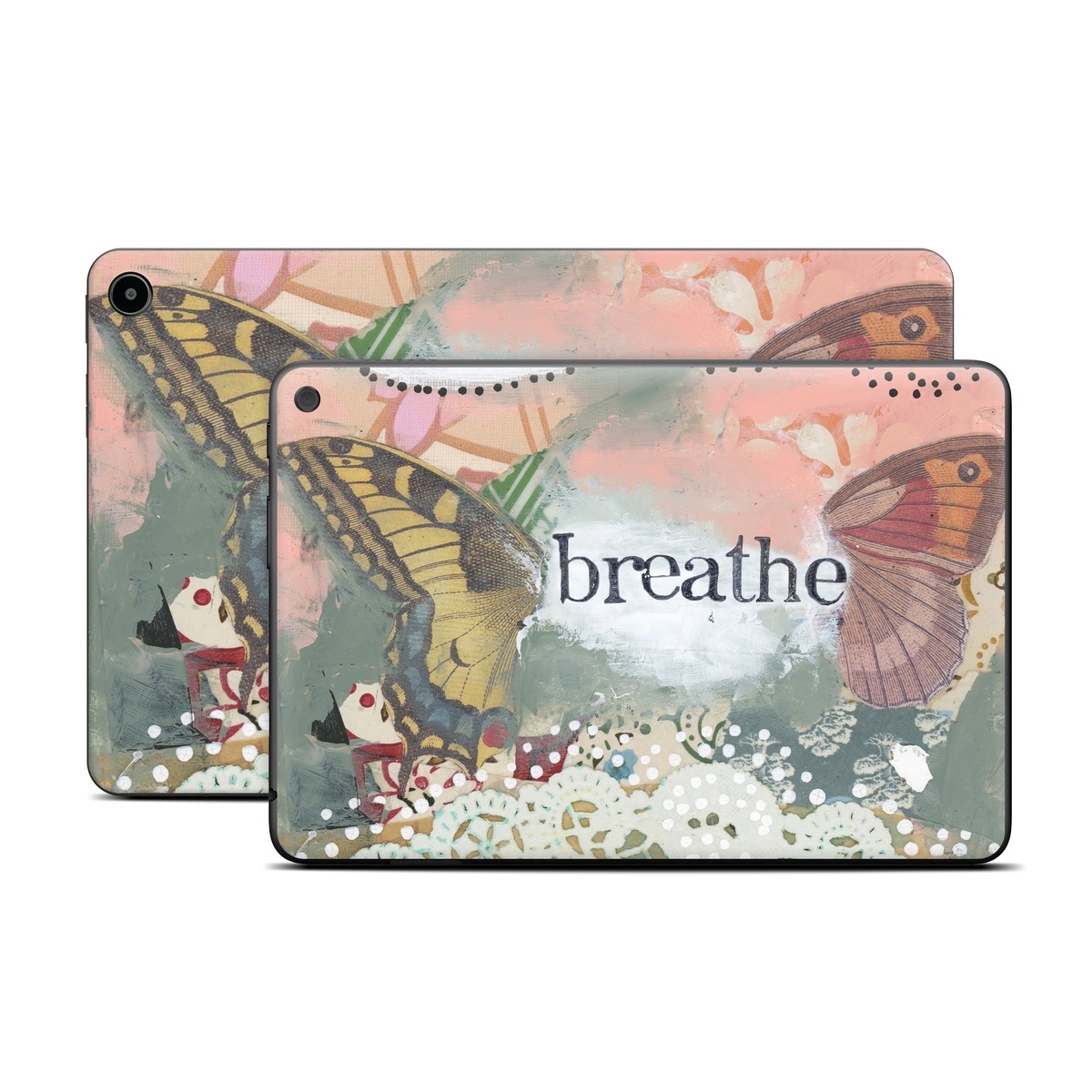 iStyles Amazon Fire Tablet Series Skin design of Butterfly, Moths and butterflies, Insect, Pollinator, Organism, Illustration, Brush-footed butterfly, Art, Fictional character, Wildflower, with pink, brown, white, black, red, blue, green colors, and tagged with signs, animals, patterns, abstract, butterfly, flower, hope, hopeful, inspirational, inspire.
