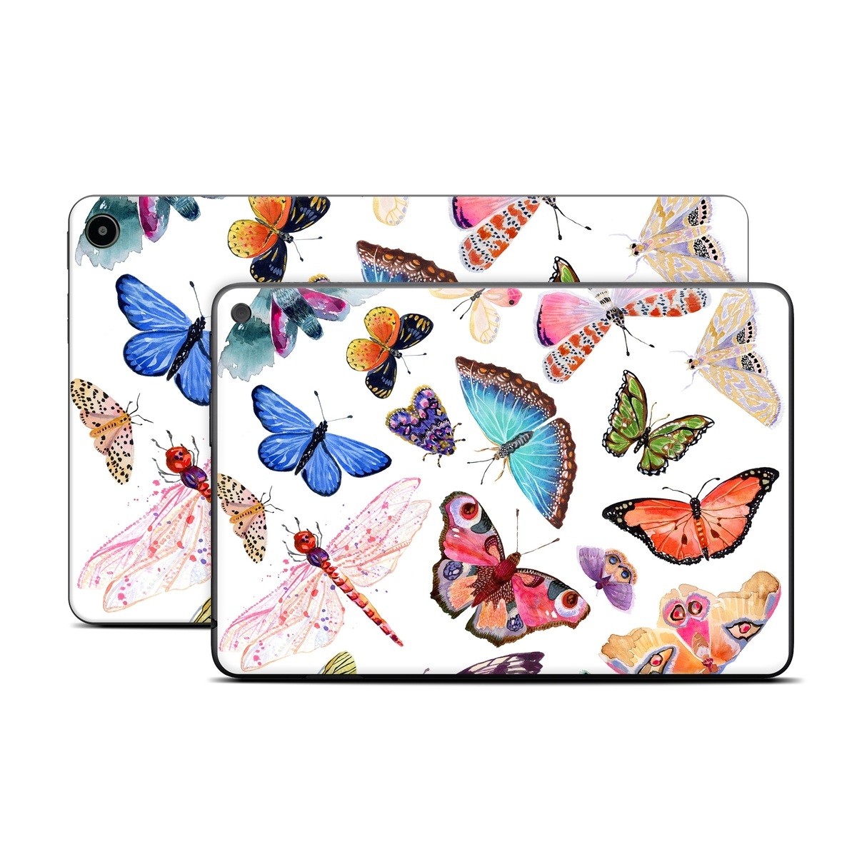 iStyles Amazon Fire Tablet Series Skin design of Butterfly, Pollinator, Insect, Arthropod, Organism, Moths and butterflies, Art, Symmetry, Wing, Illustration, with white, blue, green, red, yellow, orange, pink, brown, purple colors, and tagged with patterns, animals, bug, butterflies, butterfly, drawing, insects, nature, outdoors, watercolor.