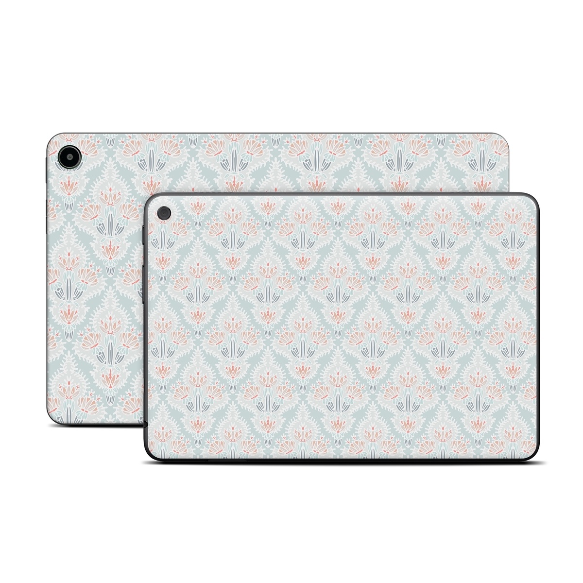 iStyles Amazon Fire Tablet Series Skin design of Pattern, Aqua, Line, Design, Textile, Wrapping paper, Pedicel, Dahlia, Visual arts, with blue, red, white colors, and tagged with patterns, flowers, cactus, floral, flowers, pattern, soft.