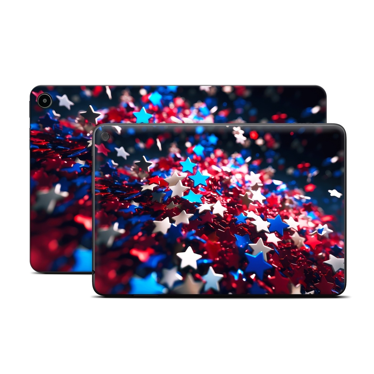 iStyles Amazon Fire Tablet Series Skin design of Colorfulness, Petal, Plant, Magenta, Font, Electric blue, Event, Close-up, Macro photography, Flowering plant, with red, blue, white, black colors, and tagged with flags, patterns, signs, united, states, celebration, stars.