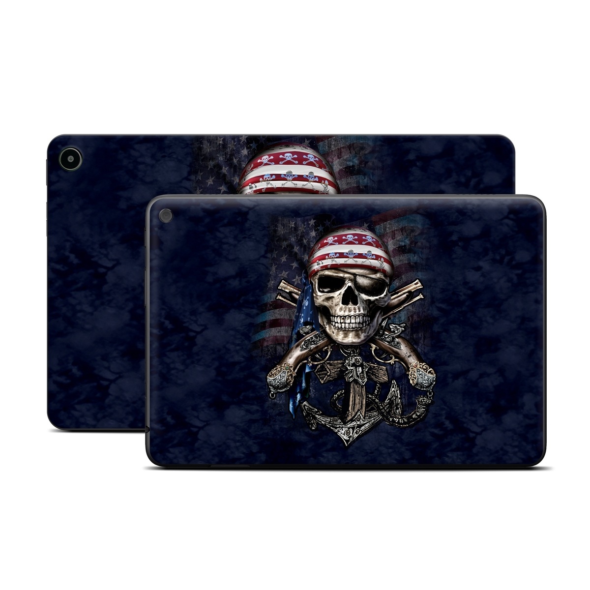iStyles Amazon Fire Tablet Series Skin design of Skull, Bone, Skeleton, Illustration, Outerwear, T-shirt, Flag, Art, with black, gray, red colors, and tagged with skulls, flags, objects.