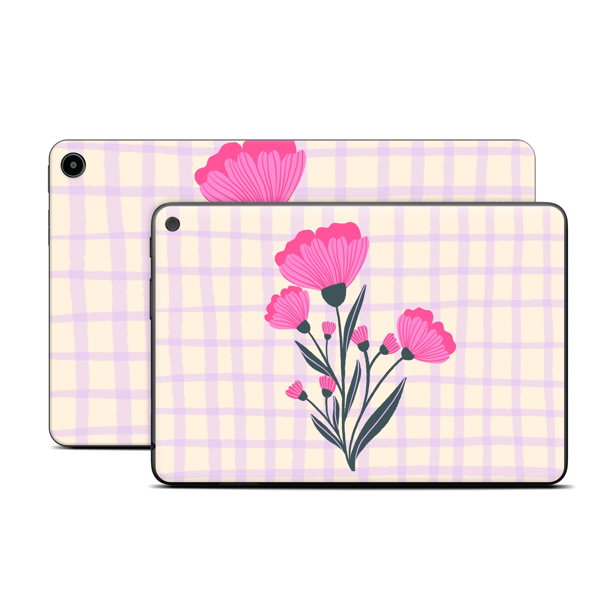 iStyles Amazon Fire Tablet Series Skin design of Flower, Plant, Petal, Product, Dishware, Textile, Creative arts, Pink, Art, Magenta, with white, green, pink, purple colors, and tagged with flowers, patterns, bouquet, pink.