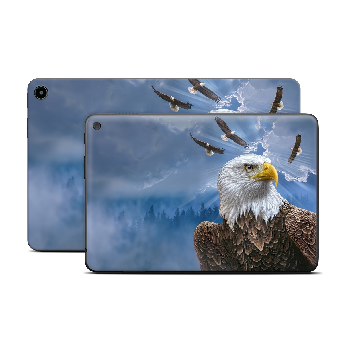 iStyles Amazon Fire Tablet Series Skin design of Bird, Bald eagle, Bird of prey, Vertebrate, Accipitriformes, Accipitridae, Eagle, Nature, Beak, Kite, with blue, brown, white, yellow colors, and tagged with animals, nature, america, animals, birds, eagle, nature.