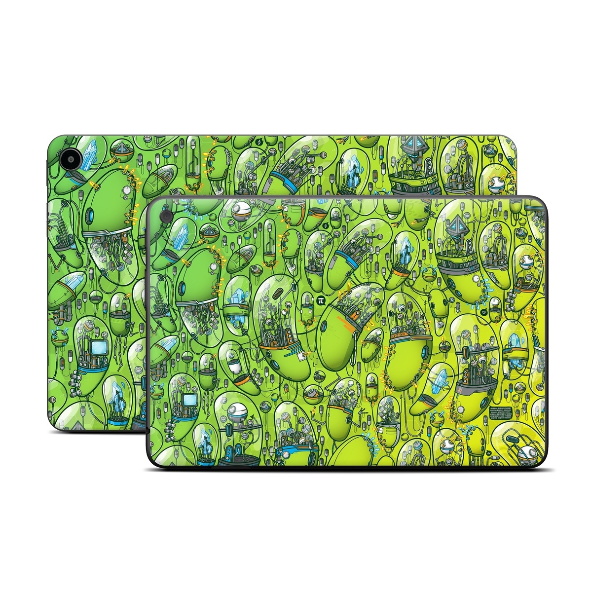 iStyles Amazon Fire Tablet Series Skin design of Green, Pattern, Yellow, Design, Illustration, Plant, Art, Graphic design, Urban design, with green, blue, gray, yellow, orange colors, and tagged with objects, patterns, green, illustration, limegreen, pattern, technology, vector.