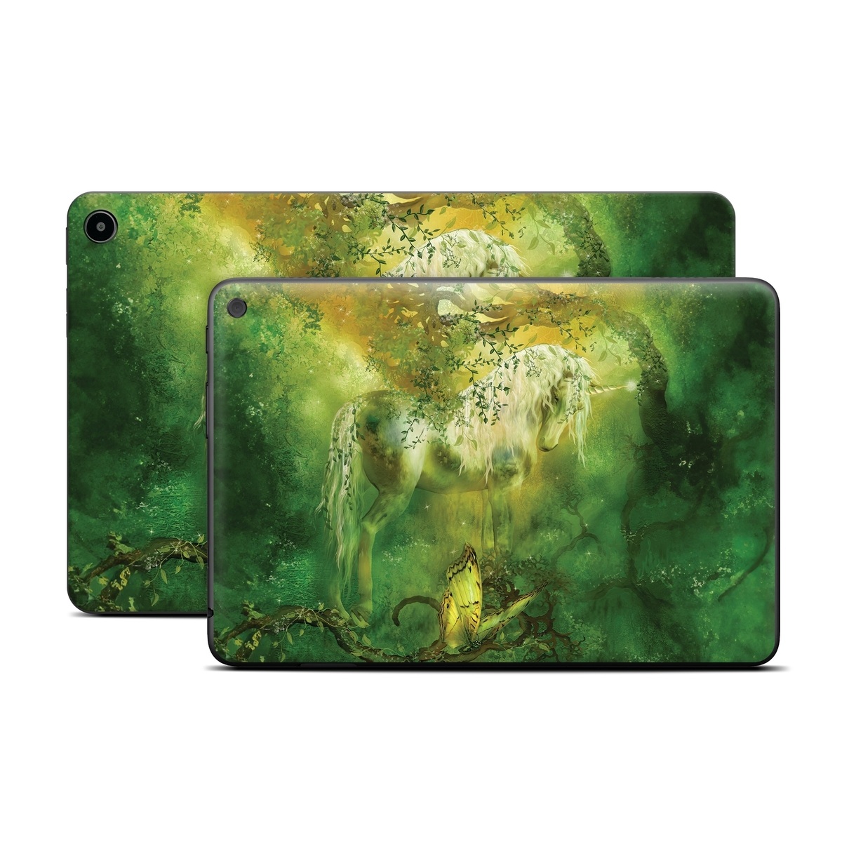 iStyles Amazon Fire Tablet Series Skin design of Nature, Green, Painting, Art, Visual arts, Watercolor paint, Illustration, Modern art, Still life, with green, black, gray colors, and tagged with animals, nature, animals, butterfly, forest, nature, unicorn.