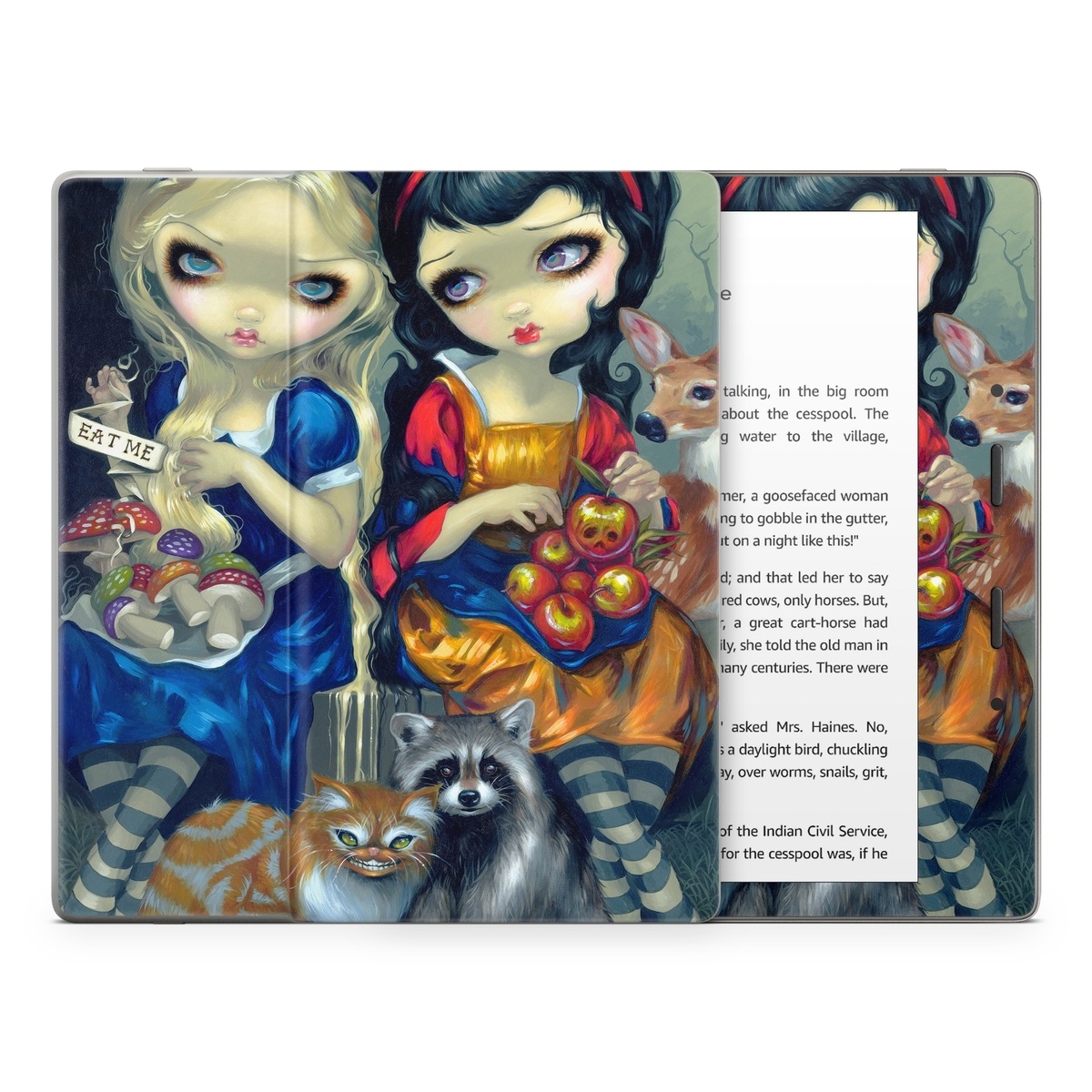 iStyles Amazon Kindle Series Skin design of Doll, Cartoon, Illustration, Cat, Art, Fawn, Toy, Fictional character, Whiskers, with blue, yellow, red, orange, gray colors, and tagged with people, animals, objects.
