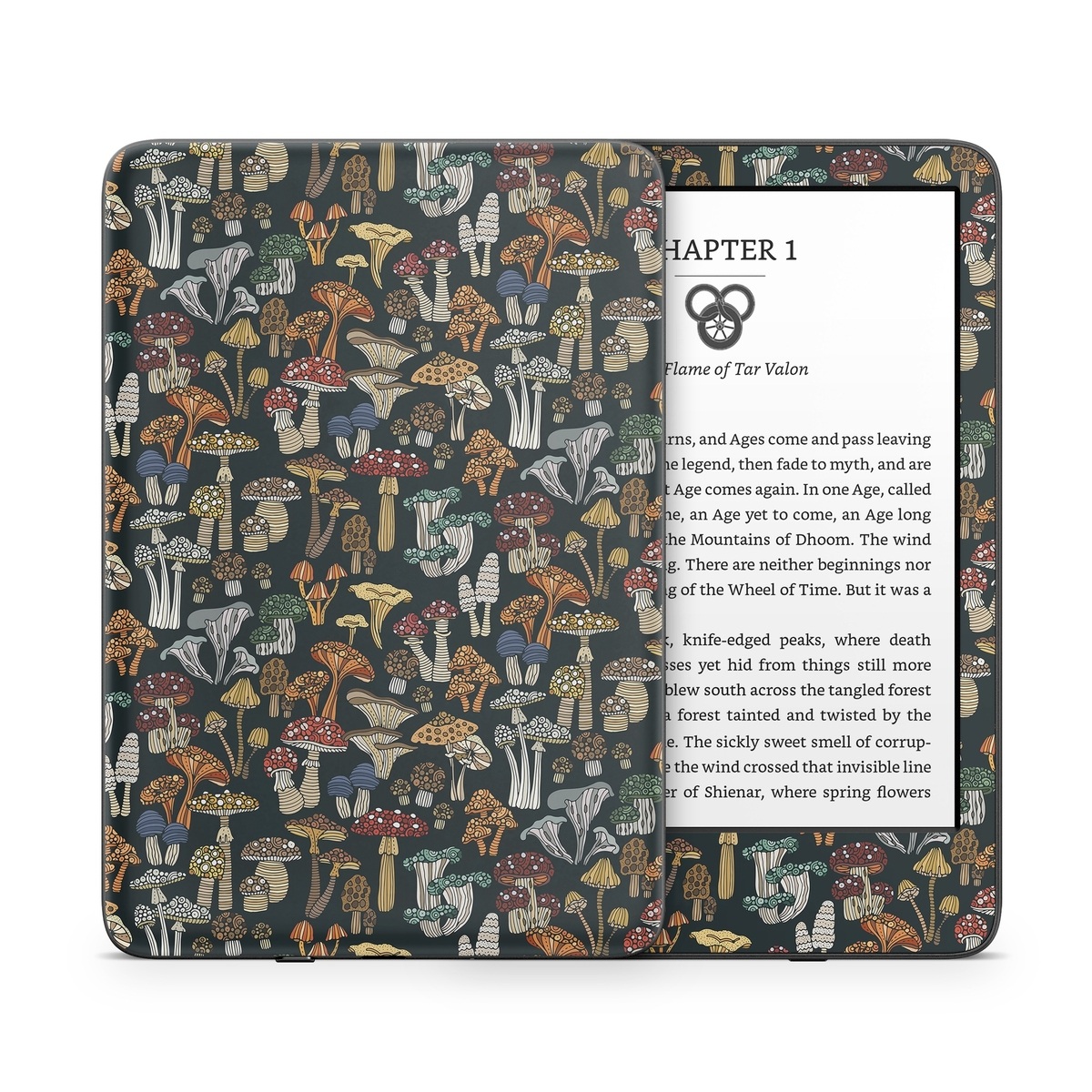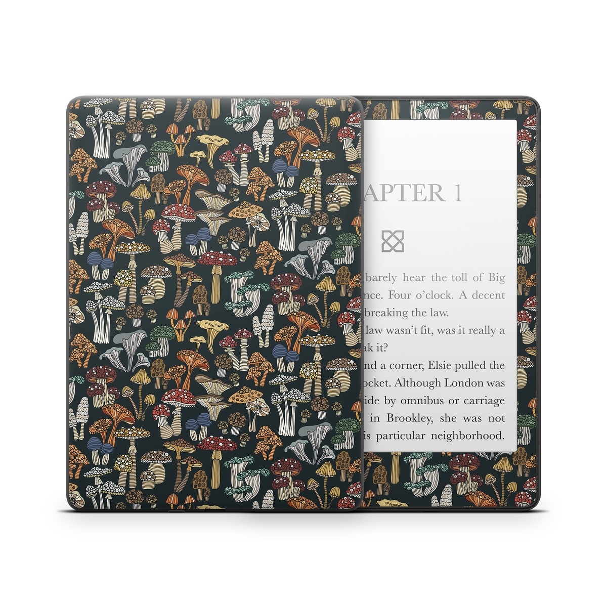 iStyles Amazon Kindle Series Skin design of Brown, Textile, Sleeve, Art, Font, Pattern, Collage, Painting, Illustration, Event, with black, white, blue, red, yellow, orange colors, and tagged with patterns, objects, fungi, mushrooms, pattern.