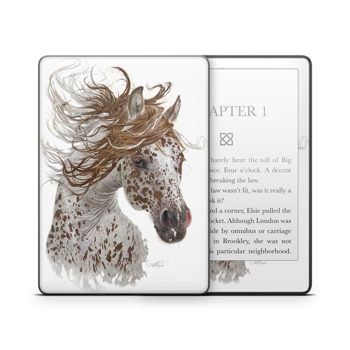 iStyles Amazon Kindle Series Skin design of Horse, Mane, Mustang horse, Illustration, Snout, Animal figure, Drawing, Stallion, Liver, Mare, with white, brown colors, and tagged with animals, animals, horse, horses, pony.