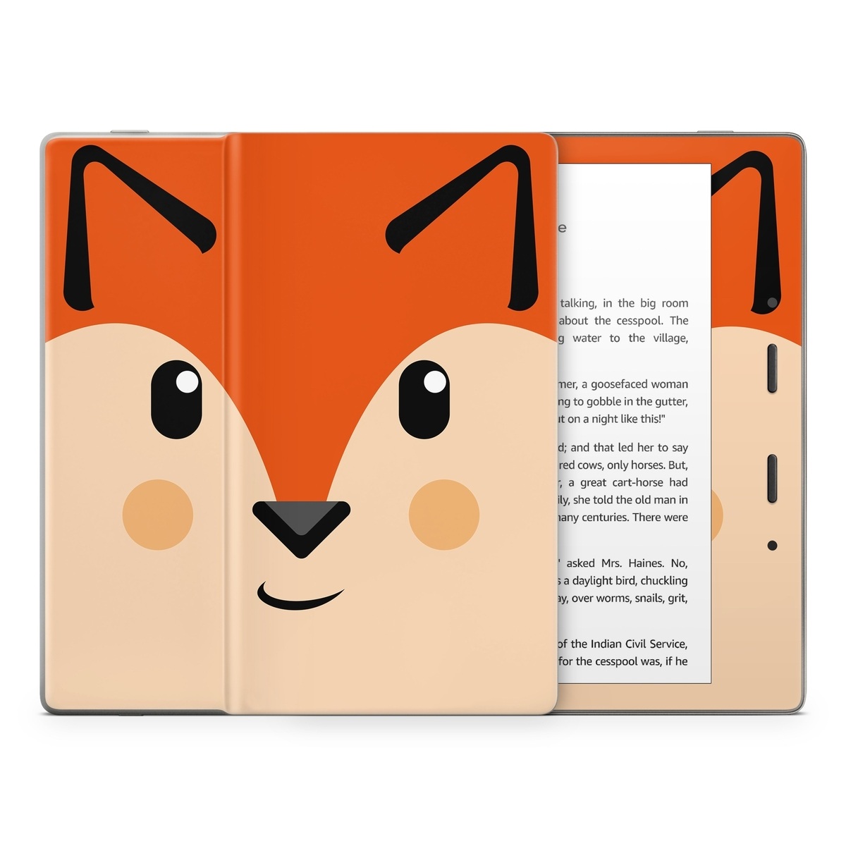 iStyles Amazon Kindle Series Skin design of Cartoon, Animated cartoon, Nose, Snout, Illustration, Whiskers, Clip art, Hamster, Animation, Art, with black, red, yellow, orange colors, and tagged with animals, animals, cute, faces, farm, simple.