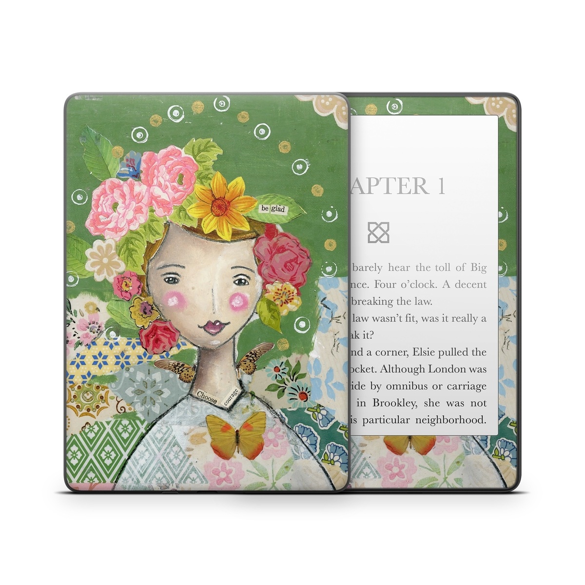 iStyles Amazon Kindle Series Skin design of Watercolor paint, Illustration, Art, Painting, Plant, Flower, Visual arts, Paint, Child art, Acrylic paint, with green, pink, red, orange, white, blue, brown colors, and tagged with flowers, patterns, animals, people.