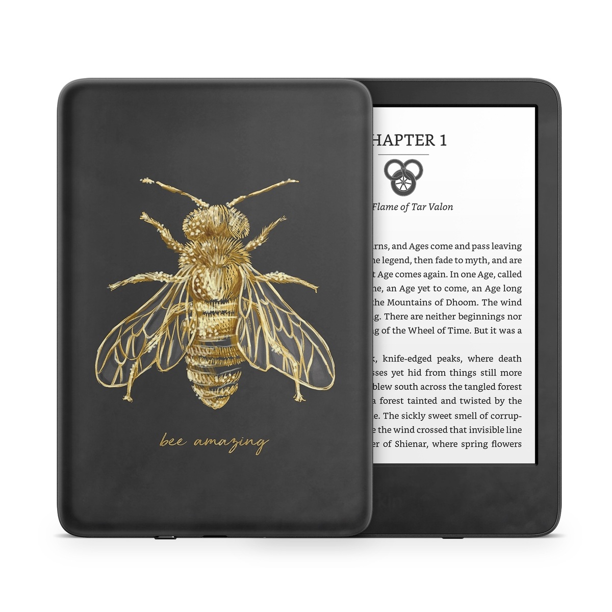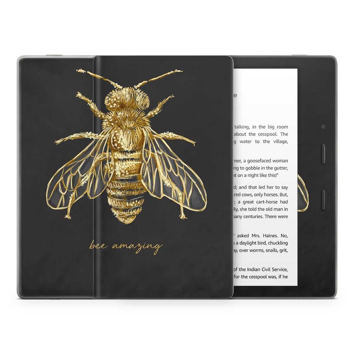 iStyles Amazon Kindle Series Skin design of Insect, Invertebrate, Membrane-winged insect, Arthropod, Pest, Net-winged insects, Bee, Cicada, Macro photography, Pollinator, with black, yellow, white colors, and tagged with animals, signs, bee, bees, bug, draw, drawing, glitter, gold, insect, sketch.