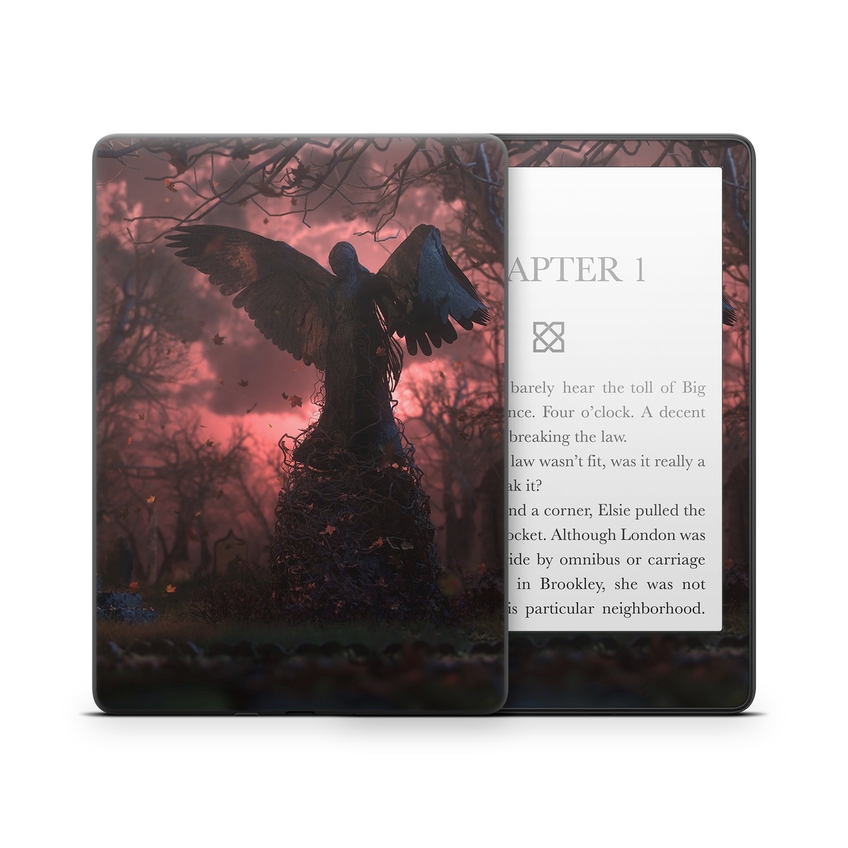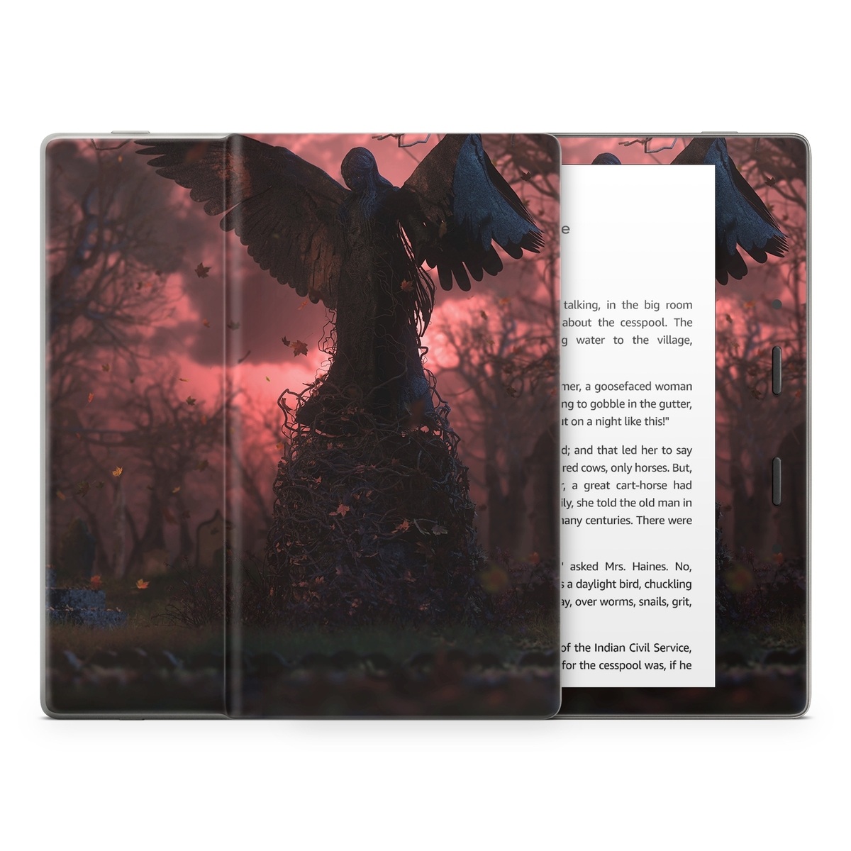 iStyles Amazon Kindle Series Skin design of Nature, Sky, Atmospheric phenomenon, Tree, Atmosphere, Darkness, Night, Screenshot, Cg artwork, Fictional character, with black, red colors, and tagged with fantasy, nature.