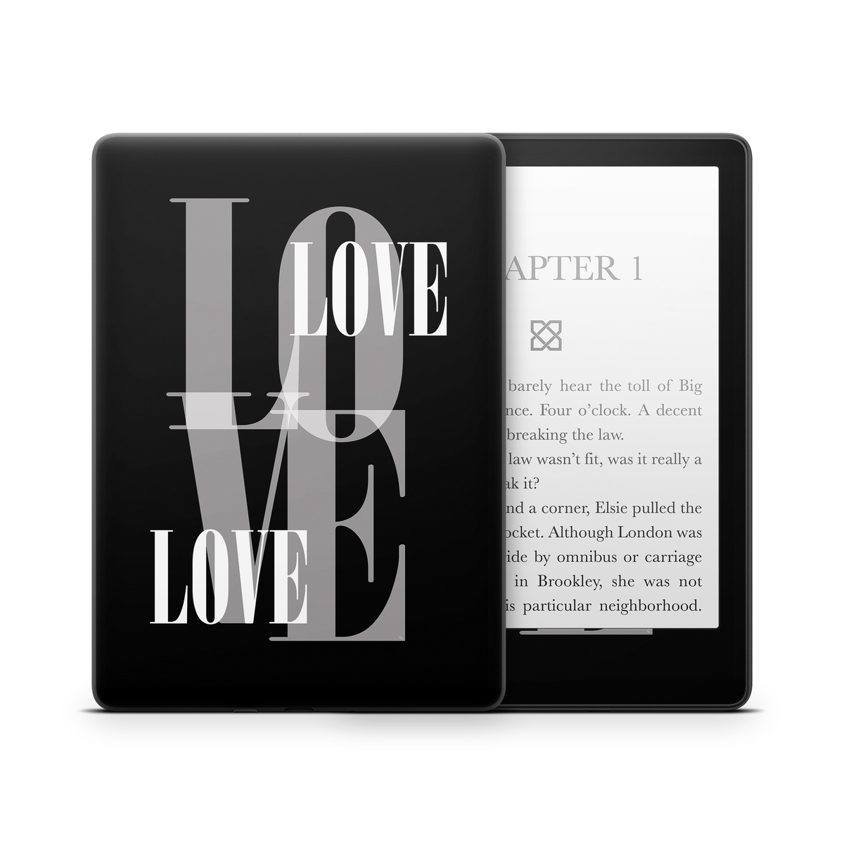 iStyles Amazon Kindle Series Skin design of Gesture, Font, Sleeve, Darkness, Logo, Brand, Graphics, Illustration, Terrestrial animal, Art, with black, white, gray colors, and tagged with signs, blackandwhite, grey, love, text.