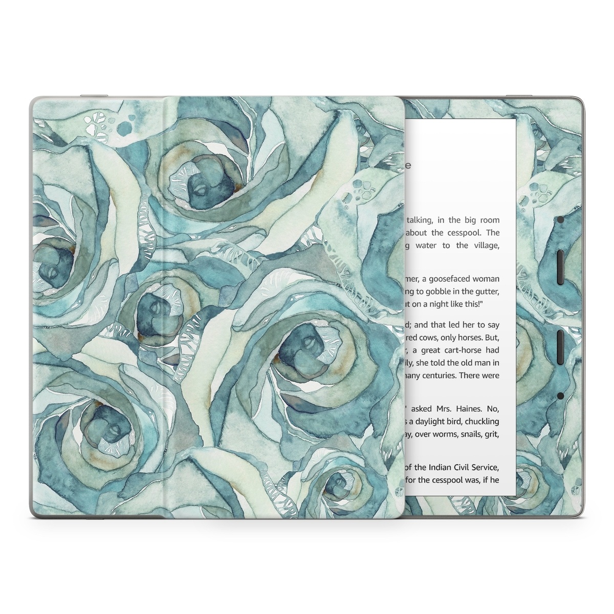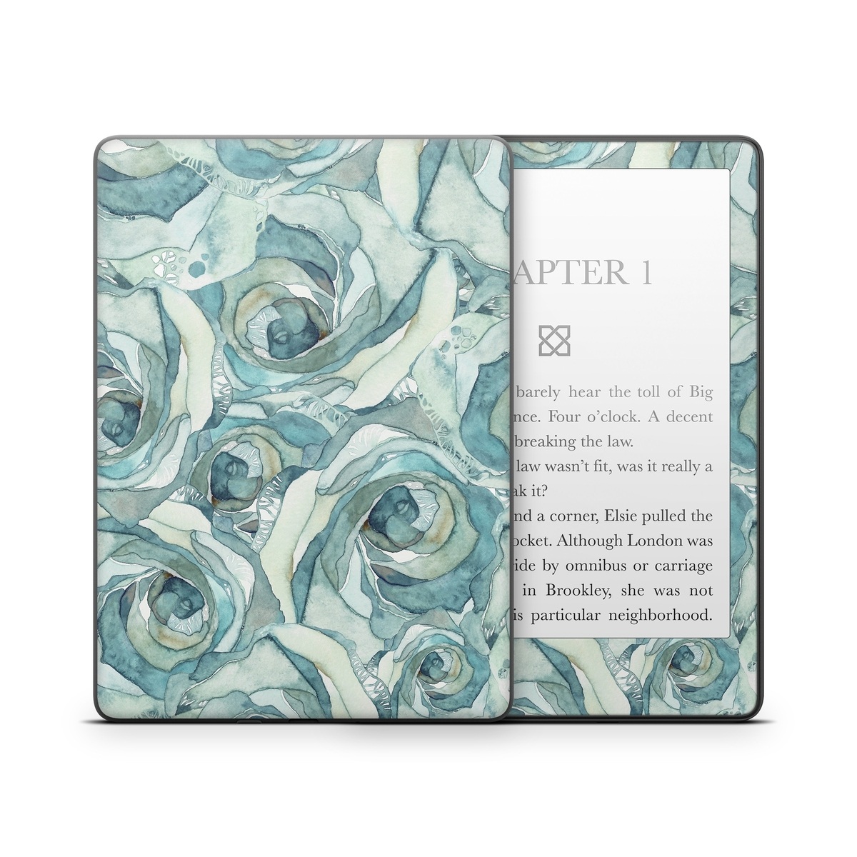iStyles Amazon Kindle Series Skin design of Rose, Garden roses, Blue, Flower, Rose family, Watercolor paint, Plant, Pattern, Rosa × centifolia, Blue rose, with blue, green colors, and tagged with patterns, flowers.