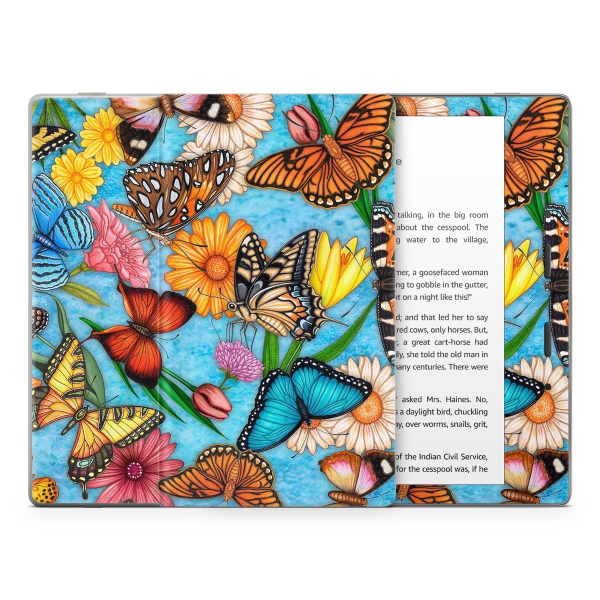 iStyles Amazon Kindle Series Skin design of Cynthia (subgenus), Butterfly, Monarch butterfly, Moths and butterflies, Brush-footed butterfly, Pollinator, Insect, Pattern, Design, Organism, with blue, pink, orange, yellow, red colors, and tagged with flowers, patterns, animals.