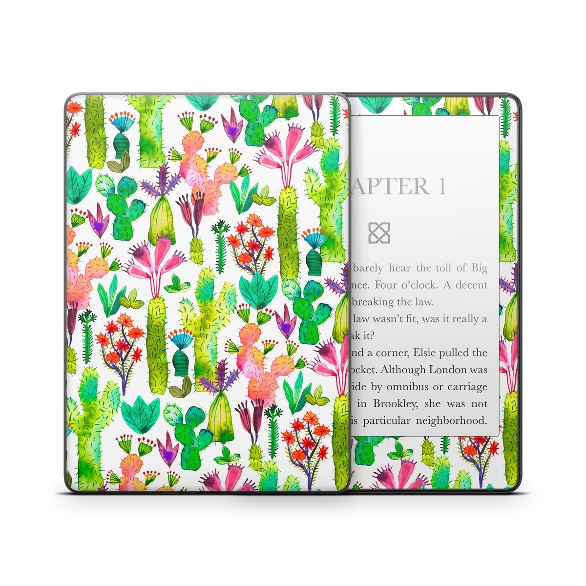 iStyles Amazon Kindle Series Skin design of Pattern, Floral design, Plant, Wildflower, Wrapping paper, with white, green, red, purple, pink, black colors, and tagged with patterns, nature, flowers, abstract, abstract, bright, cactus, colorful, nature, plants, watercolor.