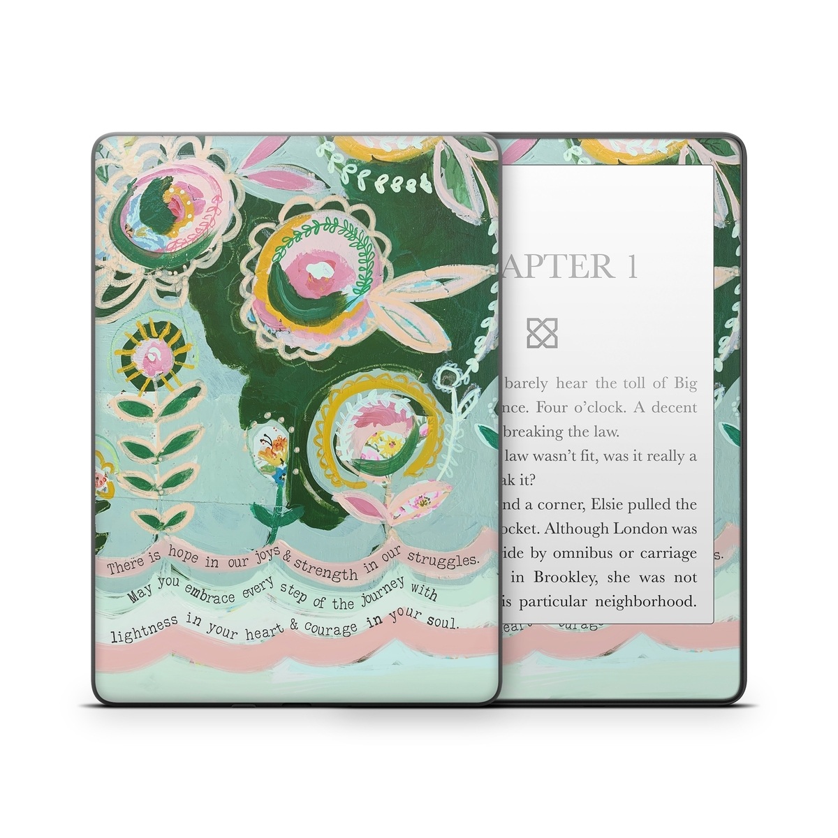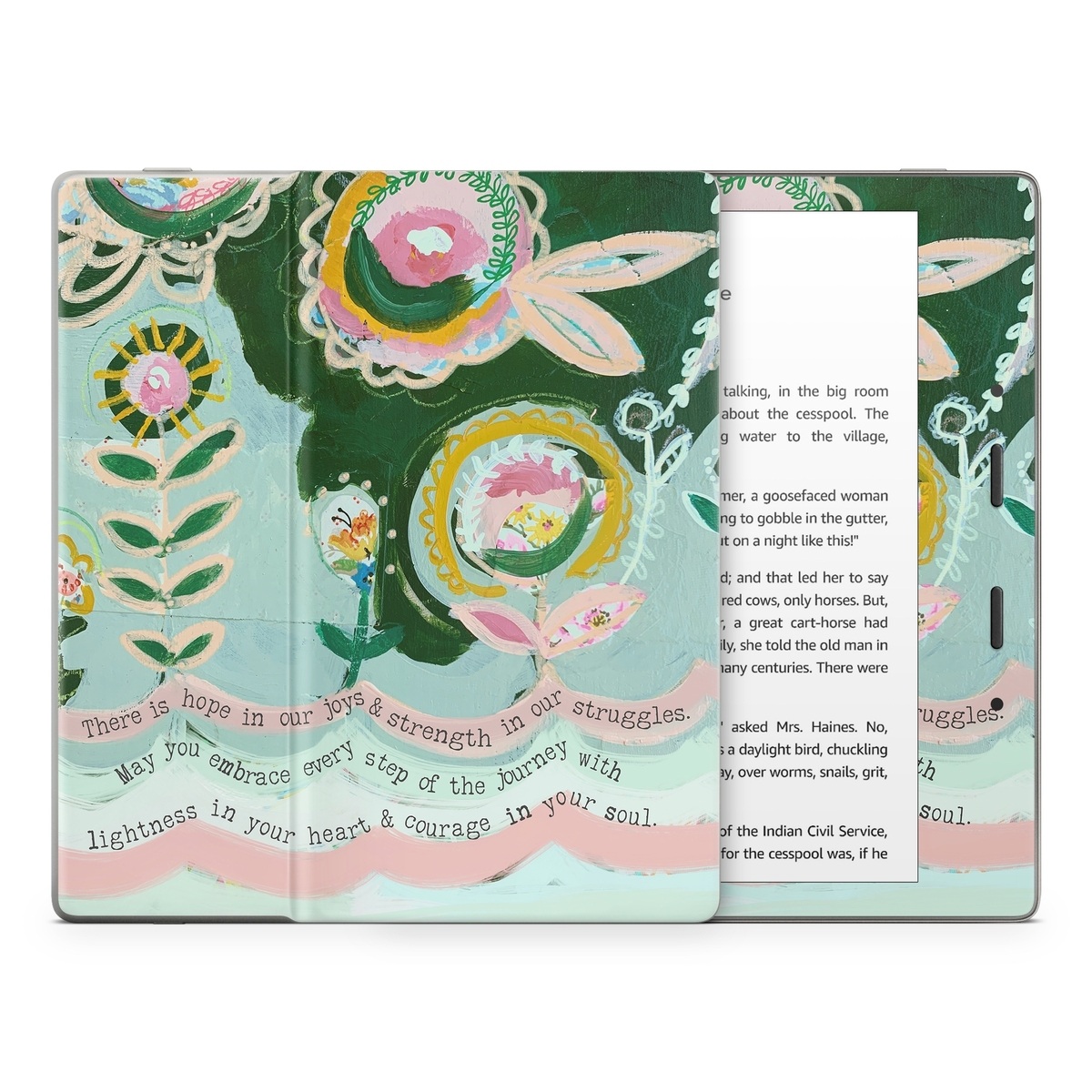 iStyles Amazon Kindle Series Skin design of Textile, Art, Font, Creative arts, Pattern, Painting, Circle, Illustration, Motif, Drawing, with blue, green, pink, yellow, orange, black colors, and tagged with signs, flowers, collage, flower, flowers, inspiration, quote, quotes, scaprbook.