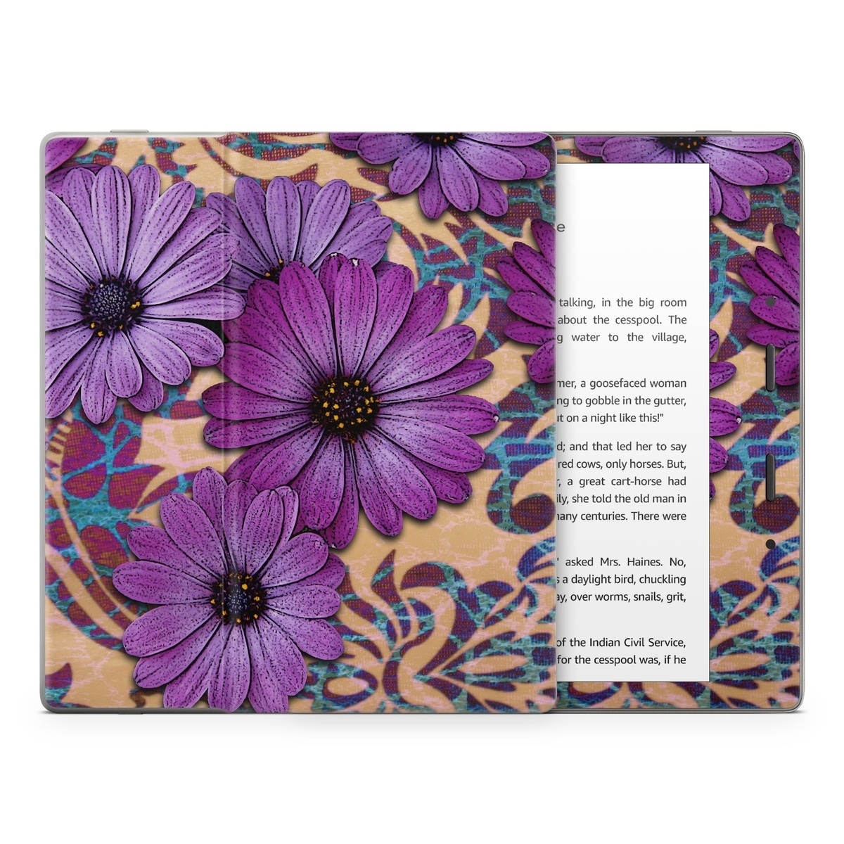 iStyles Amazon Kindle Series Skin design of Purple, Flower, Violet, Petal, Plant, african daisy, Floral design, Wildflower, Pattern, Textile, with purple, black, gray, blue, green, red colors, and tagged with flowers, patterns.