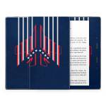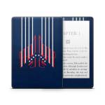 iStyles Amazon Kindle Series Skin design of Sleeve, Font, Motor vehicle, T-shirt, Emblem, Poster, Electric blue, Symmetry, Symbol, Pattern, with blue, red, white colors, and tagged with objects, military, patterns, danger, dangerzone, jet, maverick, topgun.
