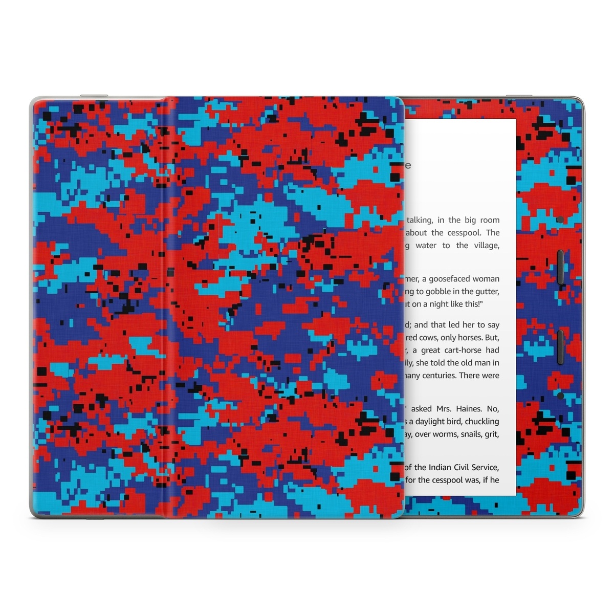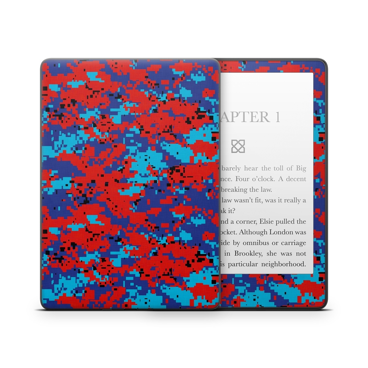 iStyles Amazon Kindle Series Skin design of Blue, Red, Pattern, Textile, Electric blue, with blue, red colors, and tagged with military, patterns, lookslike, camo, digitalcamo.