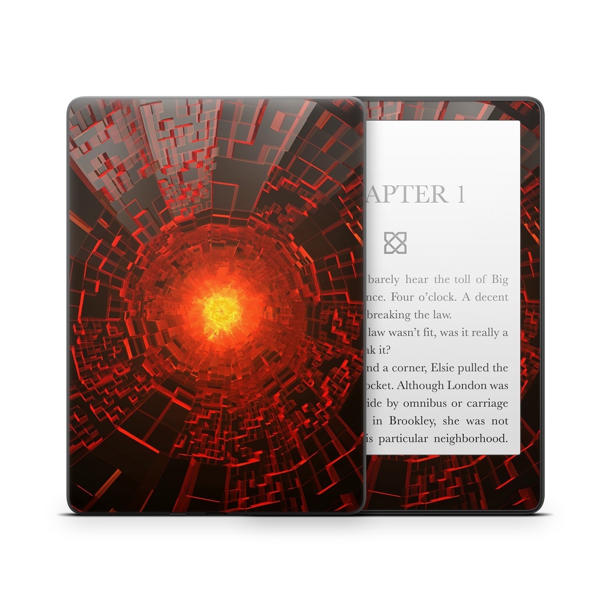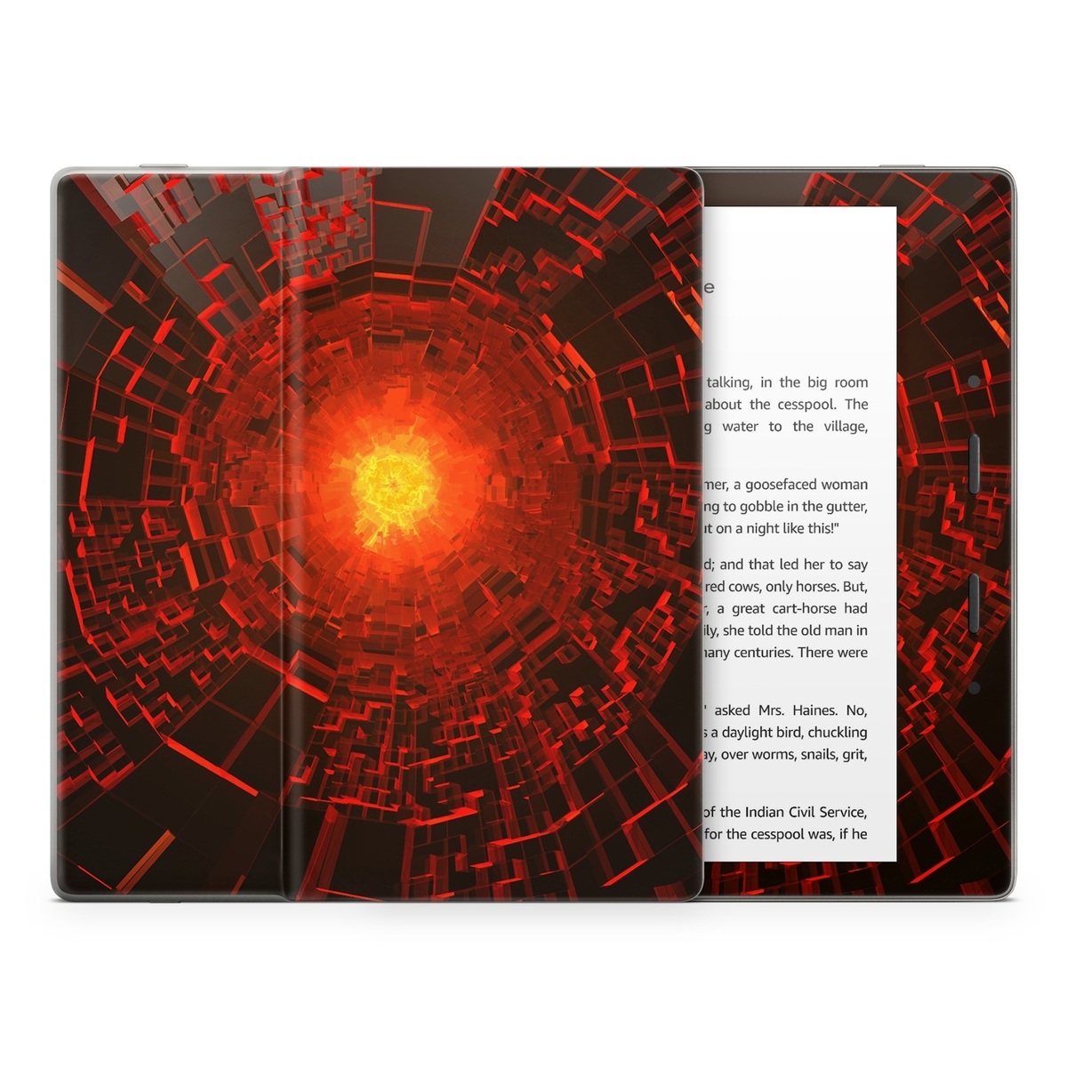 iStyles Amazon Kindle Series Skin design of Red, Fractal art, Light, Circle, Design, Art, Graphics, Symmetry, Pattern, Space, with black, red colors, and tagged with patterns.