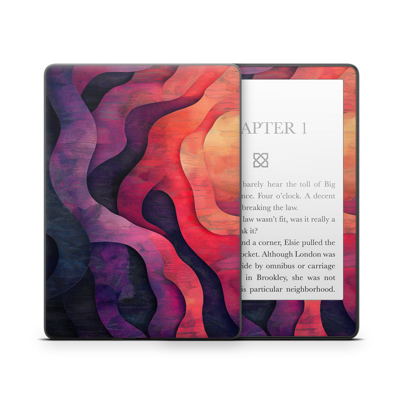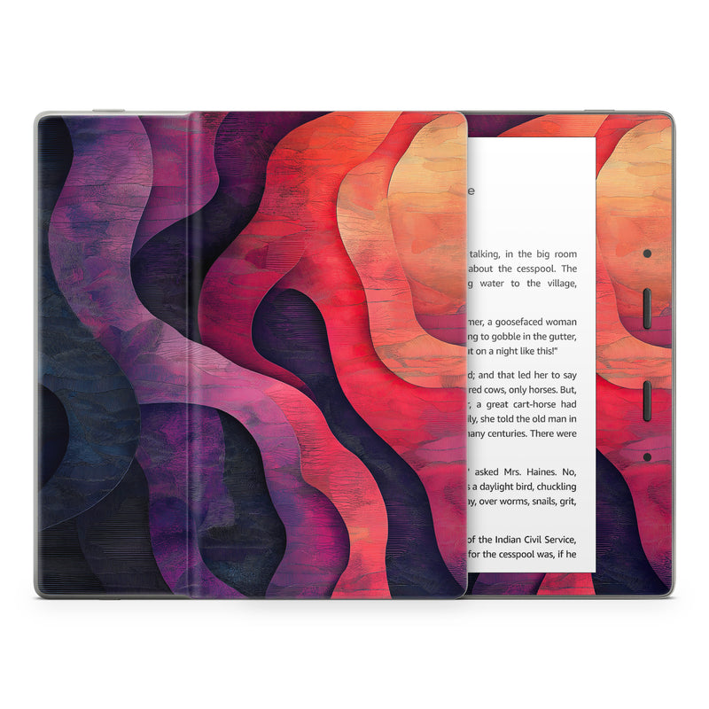 iStyles Amazon Kindle Series Skin design of Red, Orange, Art, Brown, Pink, Paint, Modern art, Graphics, Fractal art, Art Paint, with red, orange, yellow, purple, pink, black colors, and tagged with abstract, nature, formations, nature.