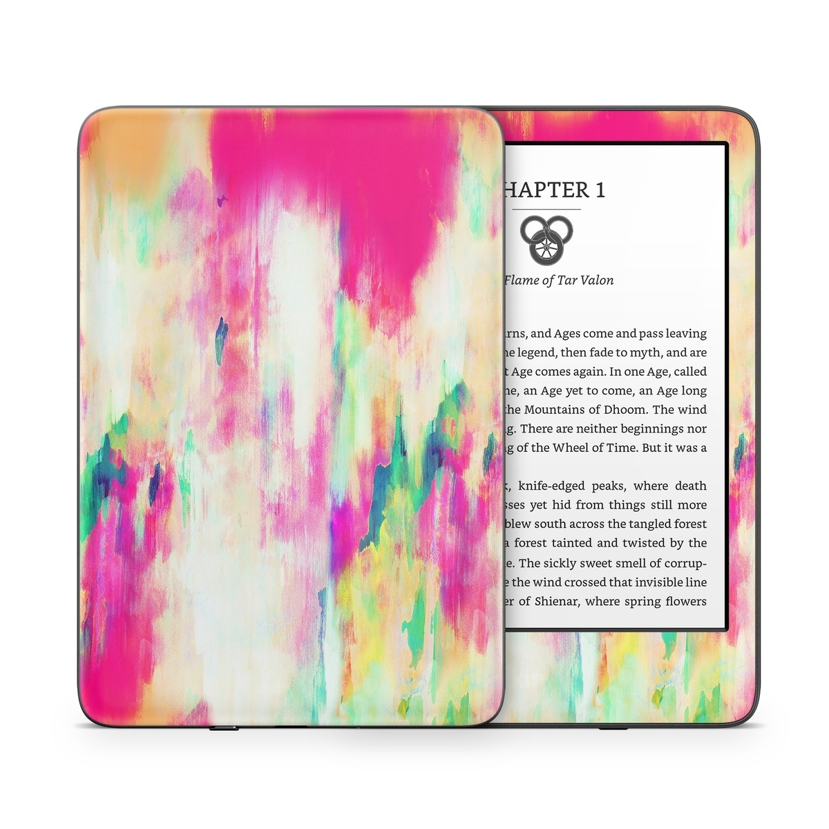 iStyles Amazon Kindle Series Skin design of Pink, Magenta, Art, Watercolor paint, Dye, Visual arts, Pattern, Modern art, Painting, Acrylic paint, with red, white, green colors, and tagged with abstract, patterns.