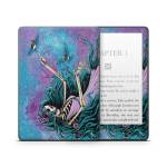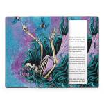 iStyles Amazon Kindle Series Skin design of Green, Purple, Painting, Paint, Art, Cg artwork, Mythical creature, Musical instrument, Graffiti, Artist, with blue, purple, white, gray, brown colors, and tagged with skulls, flowers, animals, blue, hair, purple, dress, beautiful, woman, girl, bird.