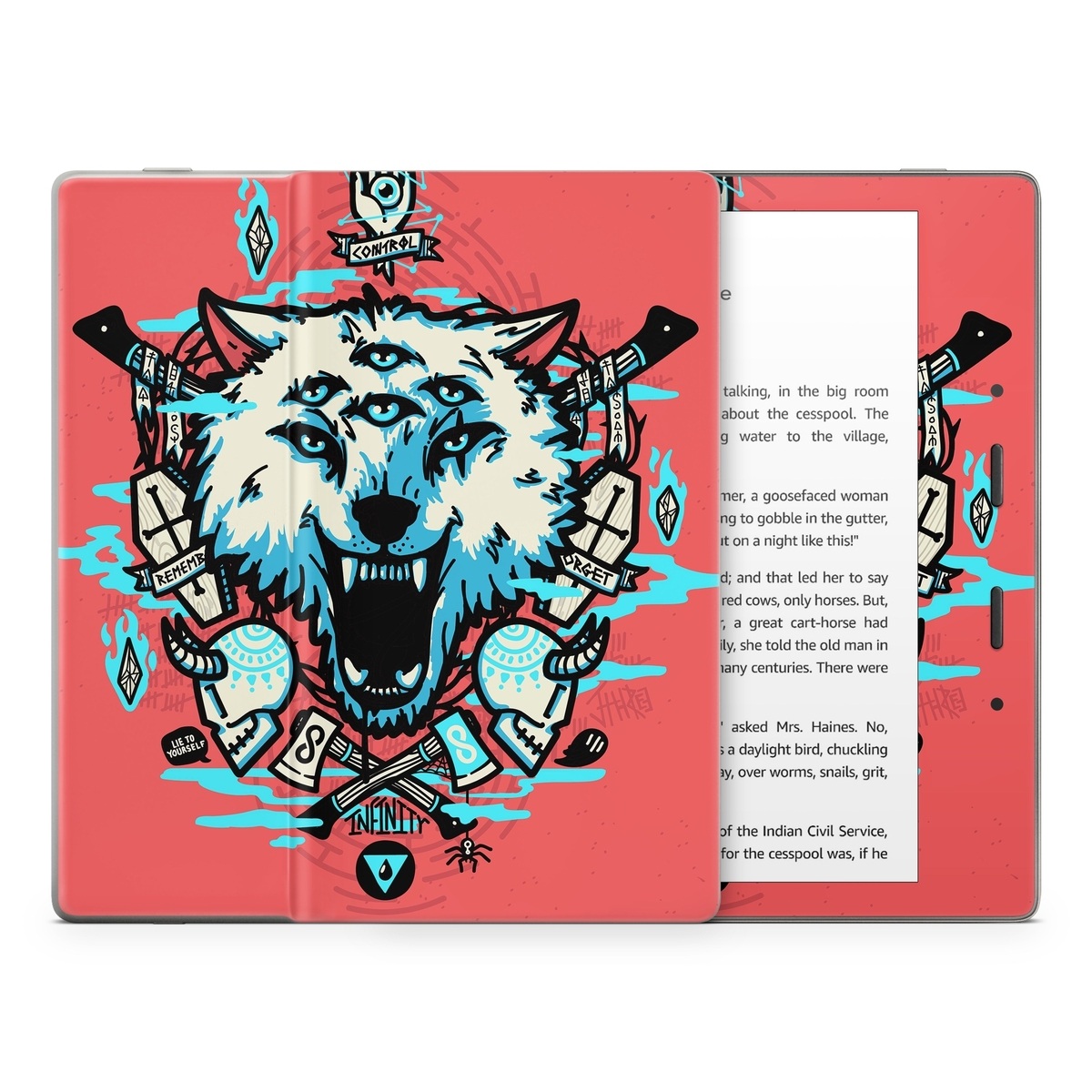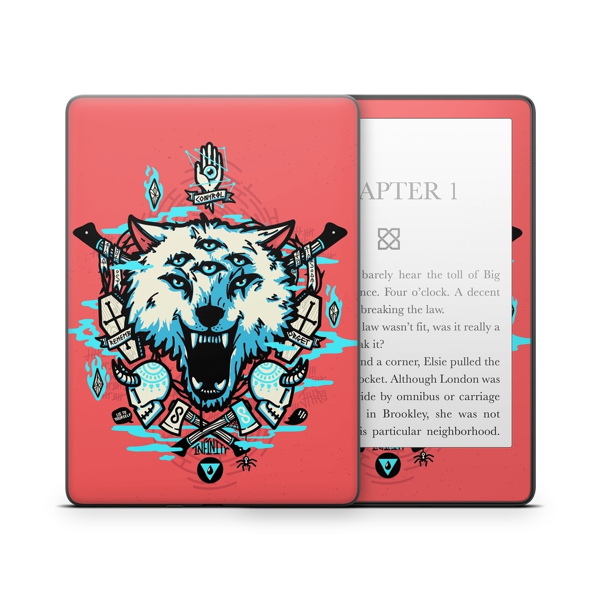 iStyles Amazon Kindle Series Skin design of Graphic design, Illustration, Crest, Logo, T-shirt, Symbol, Font, Graphics, Emblem, Pattern, with red, blue, black, gray colors, and tagged with animals, objects, signs.